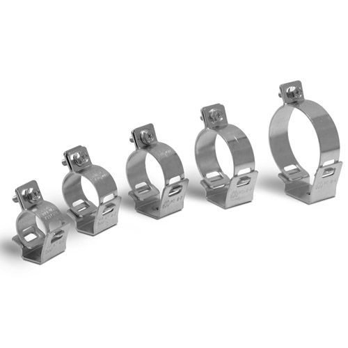 Colliers et demi-coquilles élastiques pour la fixation des tuyaux de transport, assurée sans aucun écrasement ou aucune déformation du tuyau, pour garantir sa durée dans le temps. Les deux demi-coquilles élastiques permettent la dilatation thermique des tuyaux sans risques de glissement.